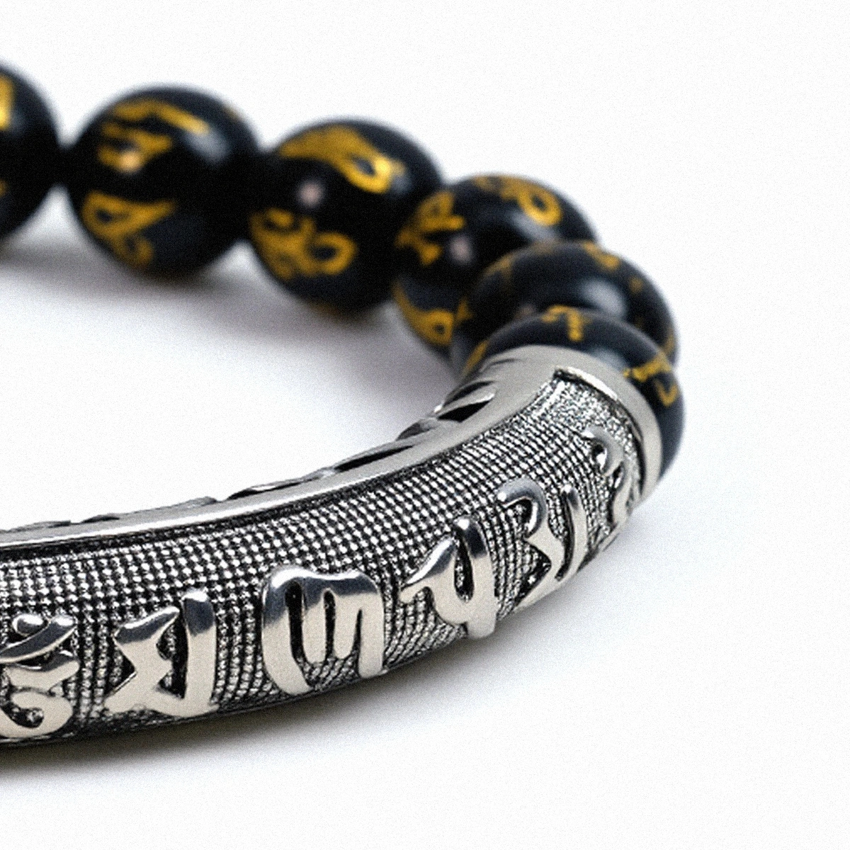 To maintain its deep luster, avoid exposing the bracelet to harsh chemicals, extreme temperatures, or prolonged moisture. After wearing, gently buff the beads with a microfiber cloth to remove oils and restore its mirror-like shine. Store it separately from other jewelry to prevent scratches to the silver detailing.