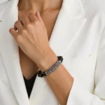 This bracelet balances boldness and sophistication seamlessly. Wear it alone to add a striking accent to a casual streetwear look, or pair it with a leather watch for a polished business-casual ensemble. It is a versatile accessory that embodies quiet confidence and understated power.